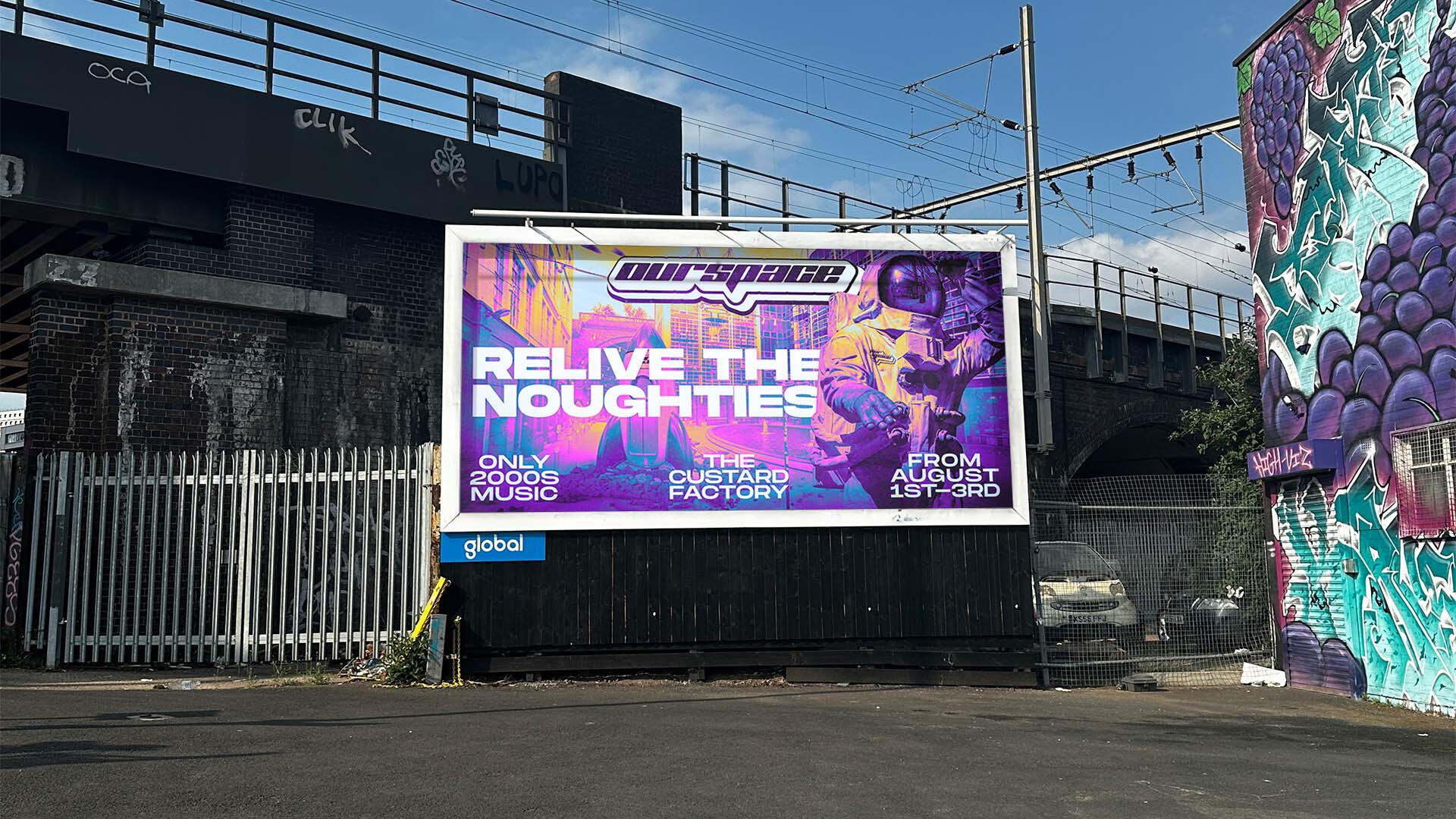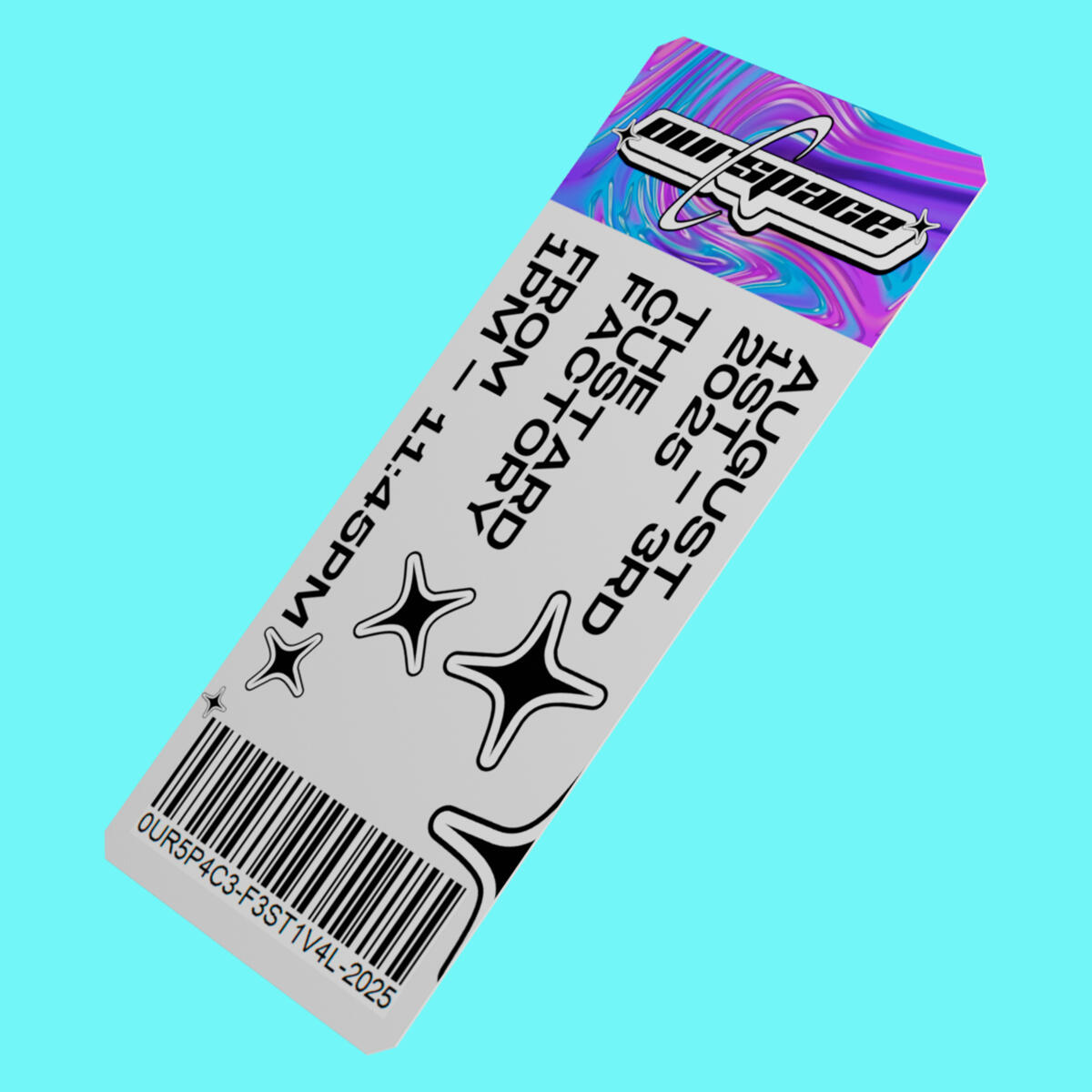 Developed a brand identity for OurSpace, a conceptual music festival celebrating 2000s pop culture and nostalgia, made as a part of my final module in the first year of Graphic Design at Birmingham City University. The visual system draws heavily from Y2K design aesthetics, incorporating chrome textures, neon colour palettes, and futuristic typography to capture the era’s digital optimism. The project expands across multiple touchpoints including posters, merchandise, motion teasers, and digital applications to create an immersive festival brand experience.